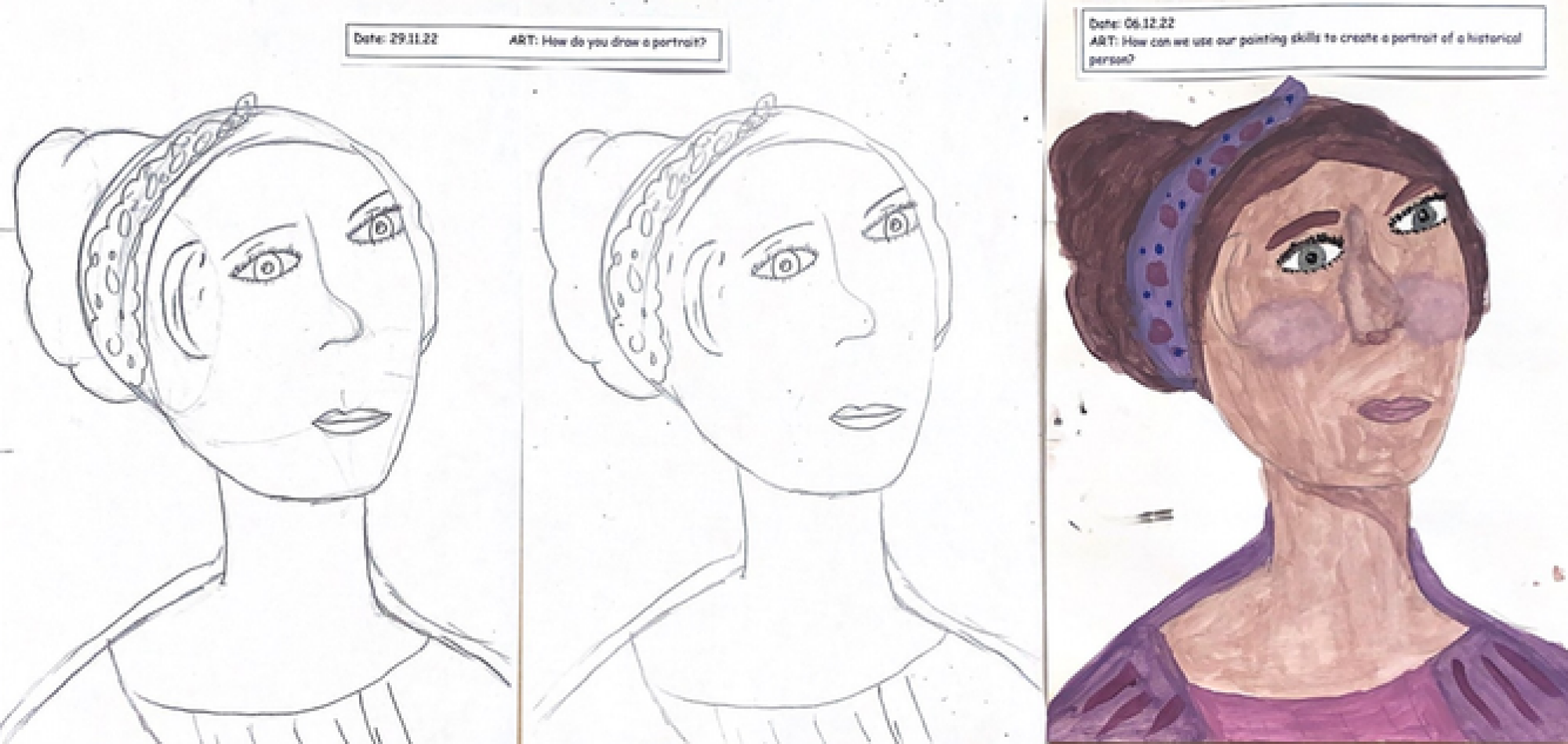 The impact of our art curriculum can clearly be seen in the children’s sketchbooks which pass on with them to the following year group. At the beginning of each enquiry where being an artist is a lead state, children will reflect on prior learning to support their future development of new skills. The outcomes of being an Artist can be seen through the children’s sketch books, displays and the challenges that the children produce. The opportunity to evaluate and reflect on the learning is planned for towards the end of the enquiry to enable the children to see how their learning is progressing and where they need to take it next. On completion of a final piece of artwork, children reflect on their achievement.