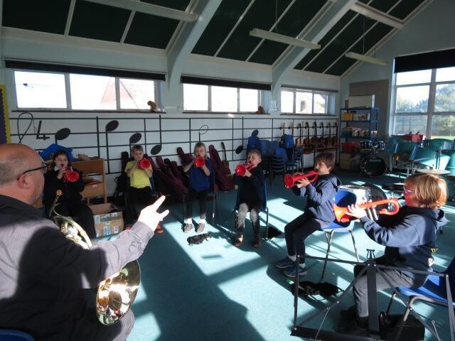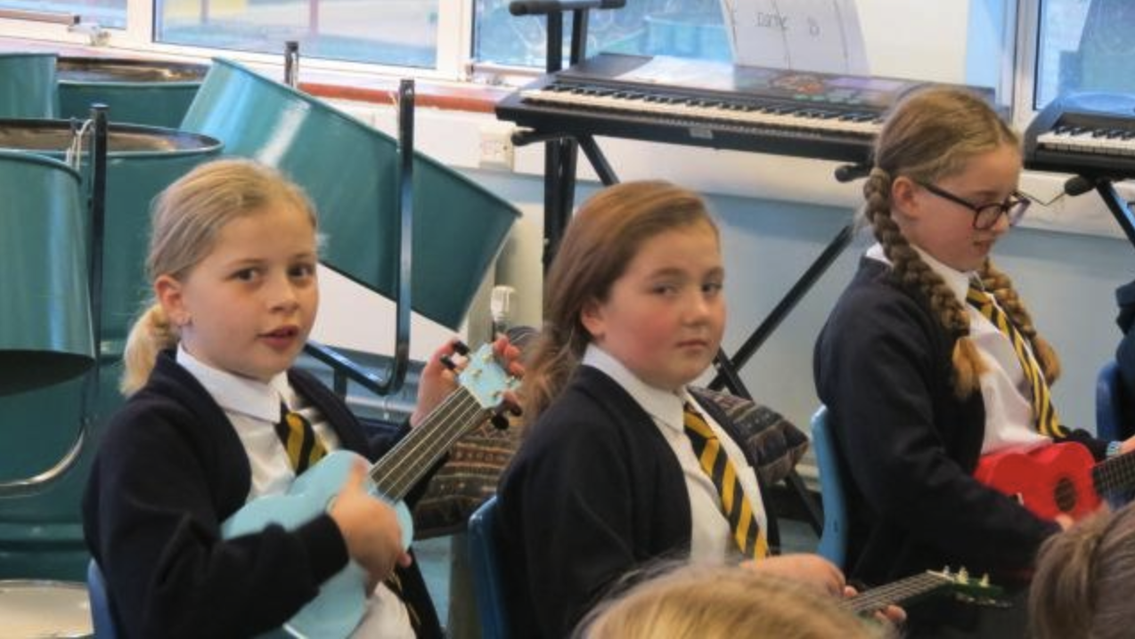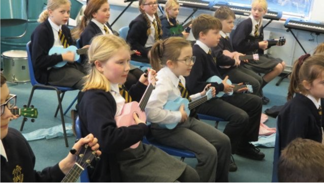 Year 6 have been learning to play the guitar and Year 5 have been learning to play the ukulele. They have been getting used to the strings and different tones of the instruments.
