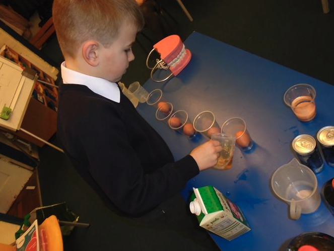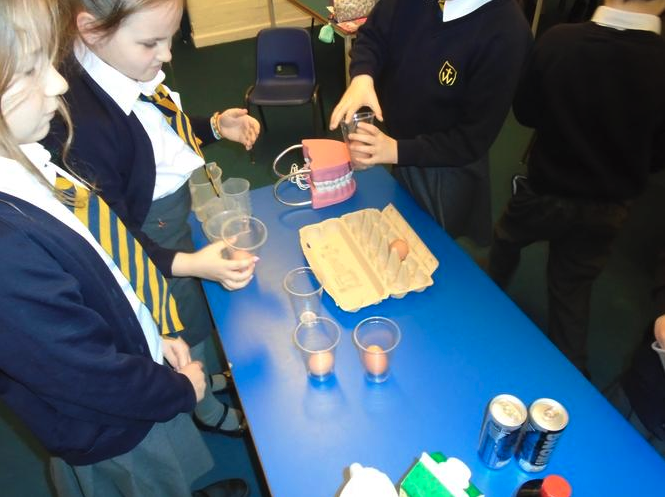 British Science Week is a ten day celebration of not just science but also, technology, engineering and maths. This year's theme is Connections. We started our week looking at different food and drink types to see which will cause different amounts of damage to our teeth. As eggshells are very similar to tooth enamel, we have been investigating the effects of different liquids on teeth.