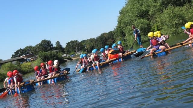For our final activity, we were split into three teams to build our rafts. Once built, we boarded our rafts and raced them across the lake, along with playing many games during our races, we all got very wet!