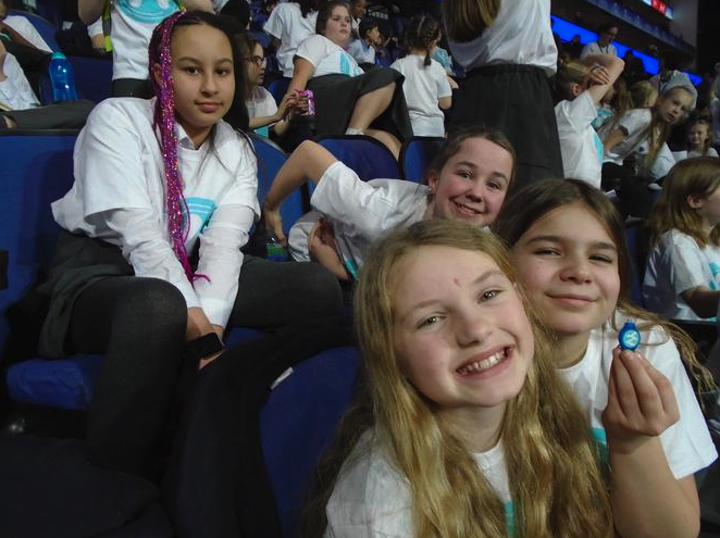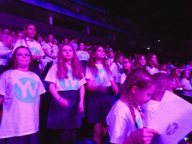 It started off with the coach from the school, then the train and tube. Before we knew it, we were eating lunch in The O2! After lunch, we headed off to find our seats in the arena, it was huge! We spent the next three hours going through the songs with the conductor, orchestra and special guests. Then we had a little time to have a tea and get changed in our brand new t-shirts, ready for the concert. Soon the empty seats began to fill with parents and we joined 8,000 other children ready to sing and wave our torches.